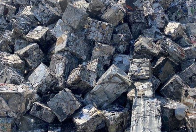 Processed aluminium scrap in compact, easy-to-handle form for efficient charging, storage, and remelting operations.